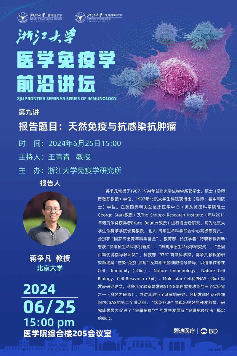 医学免疫学前沿讲坛—蒋争凡教授报告会